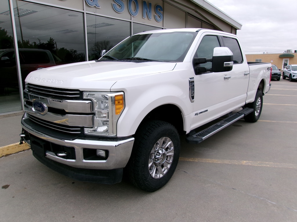 2017 Ford F250 Crew Cab Lariat, White Platinum w/ Black Leather, 6.7L Turbo Diesel, 3.55 Ratio, Chrome Package, Extended Running Boards, Navigation, Camper Package, Lariat Value Package, 134K Miles
